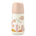 silicone fin ultra-doux avec finition sablée, la tétine de ce biberon imitera la texture et la consistance du mamelon maternel. Le mouvement sera souple et bébé se sentira donc réconforté au moment de l'allaitement.