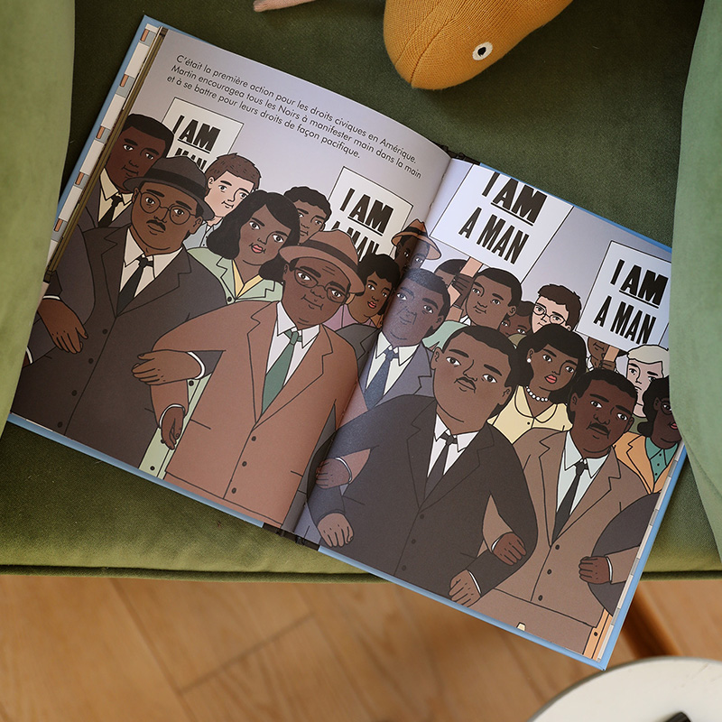 Issu de la collection Petit & Grand, le livre Martin Luther King des éditions Kimane fera découvrir à votre enfant l'histoire du célèbre pasteur. A travers les 32 pages illustrées et les textes en rime, il découvrira la vie de ce célèbre militant non-violent luttant contre la ségrégation.
