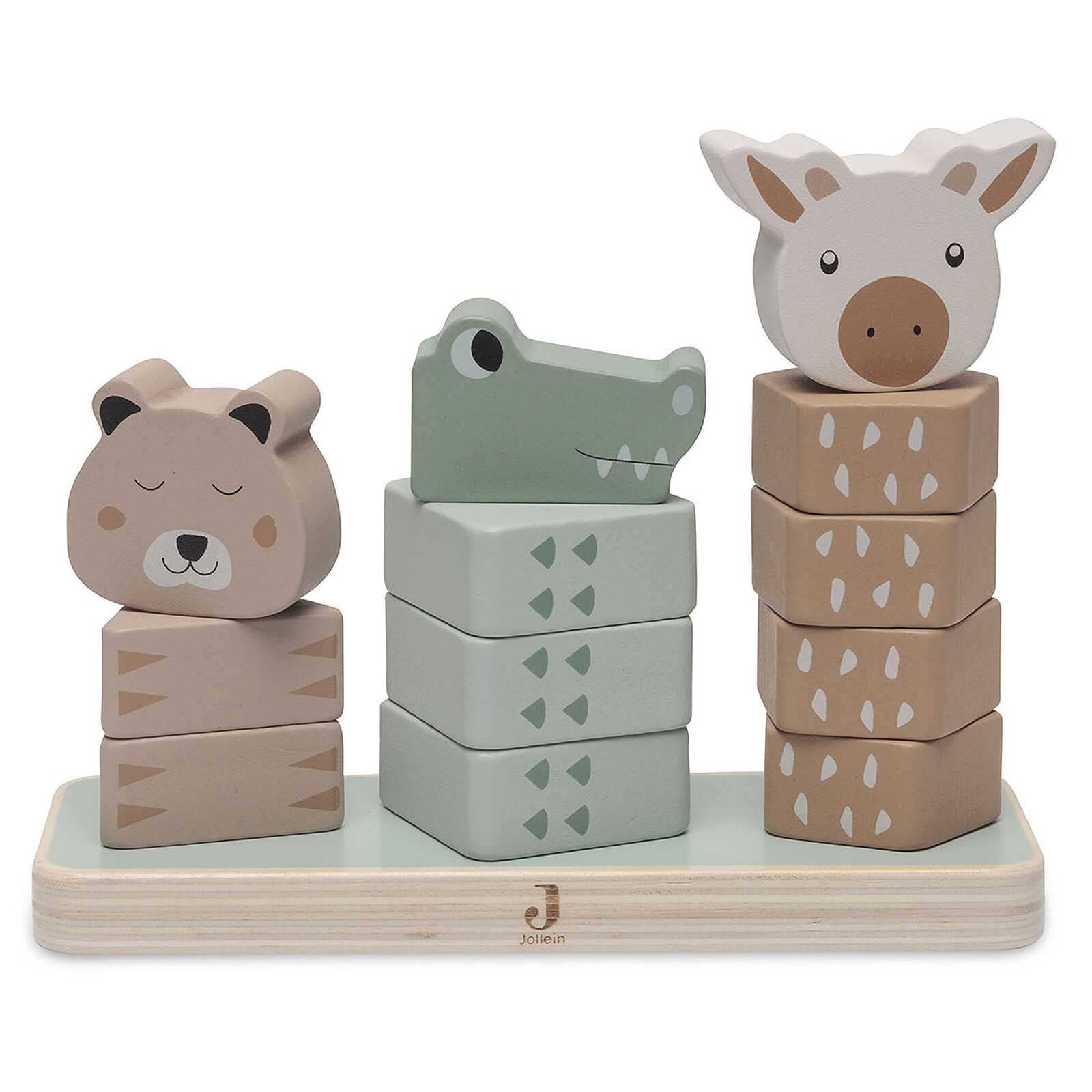 Jollein. Votre bout de chou va utiliser ses petits doigts pour empiler un à un les différents blocs dans le bon ordre pour reconstituer le guépard, le crocodile et la girafe.