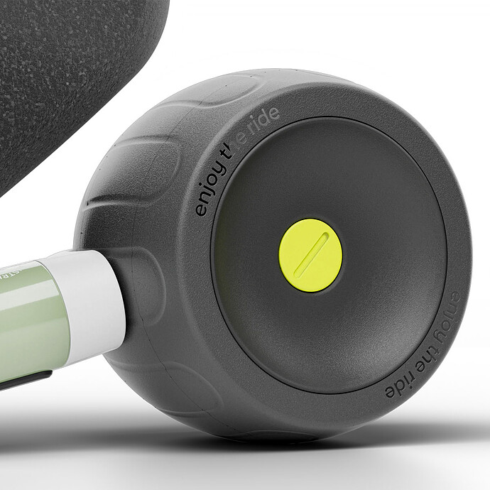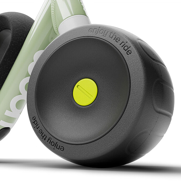 - Matières : Aluminium (cadre), EVA (pneus), polypropylène expansé recyclé à 30% (selle) et TPE (poignées)