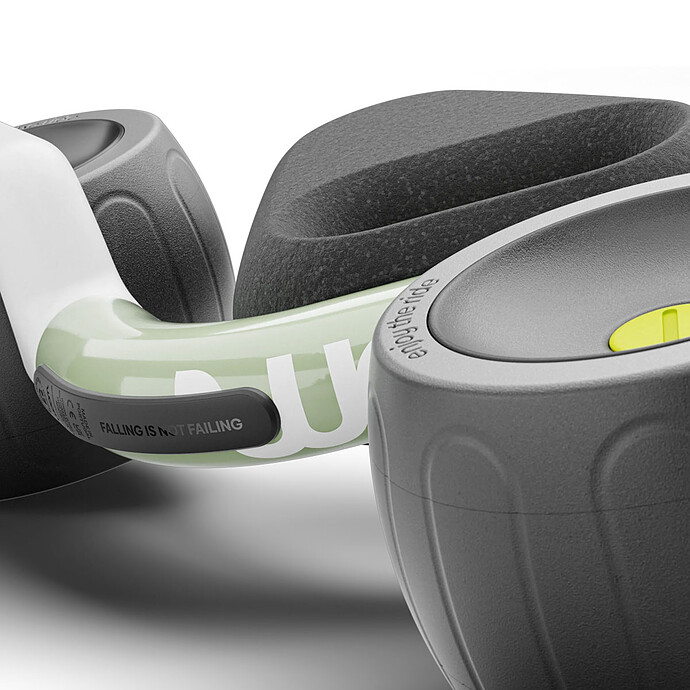 écriture "Falling is not failing" (tomber n'est pas échouer) reflète l'idée même du produit : apprendre à bébé la motricité, petit à petit !