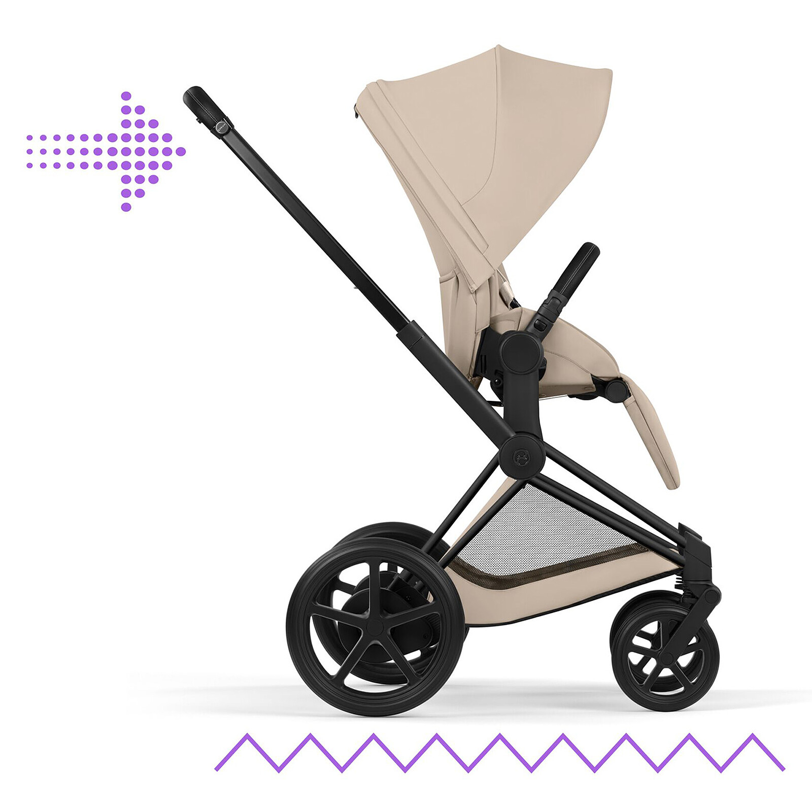 Pack Poussette e-Priam Confort Matt Black + Nacelle - Cozy Beige
