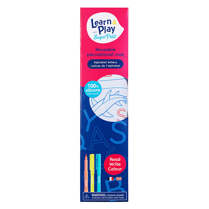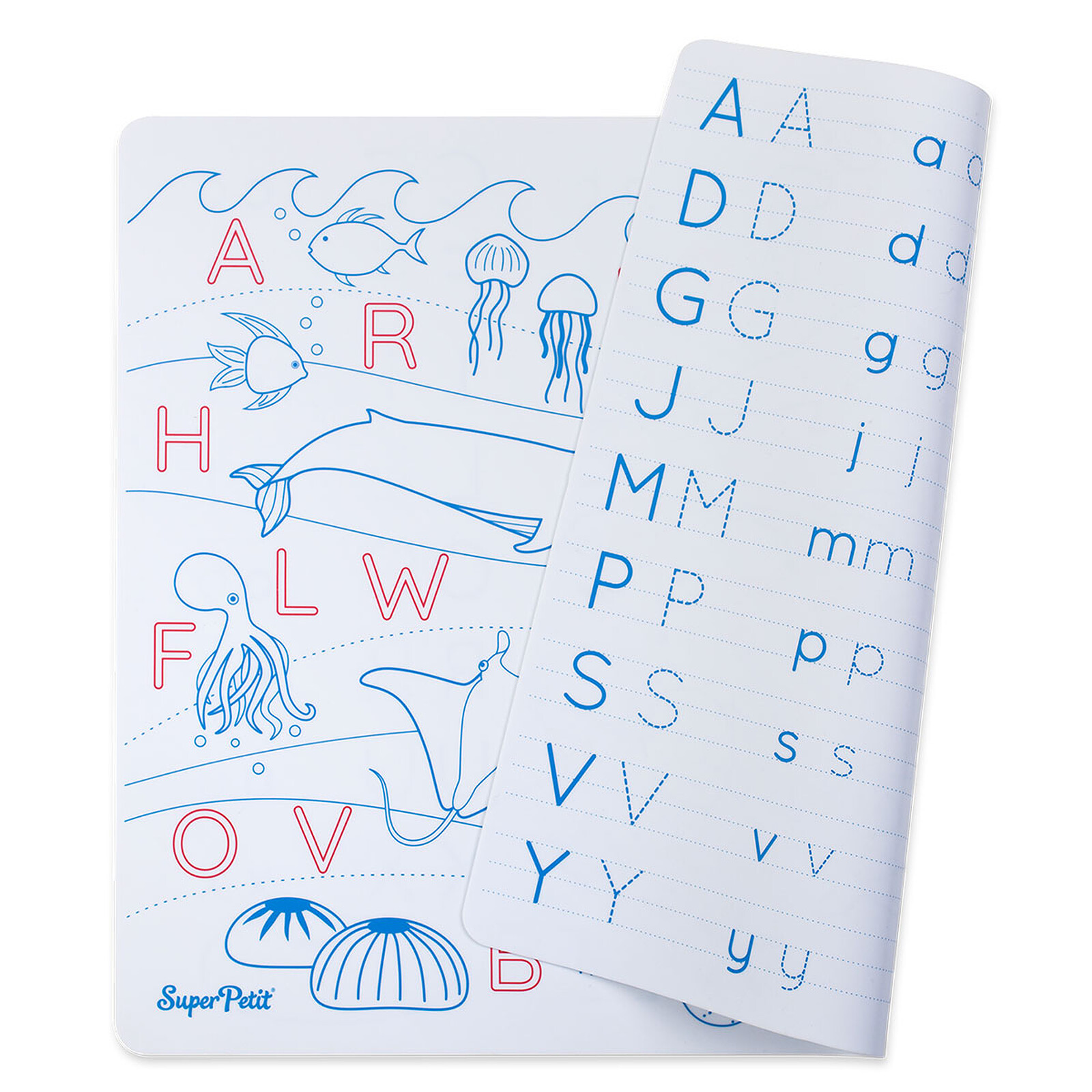 lettres de l'alphabet, permettra à votre enfant d’apprendre l'alphabet en associant chaque lettre à un animal marin rigolo. Sur l'autre face, il pourra s'exercer à tracer chaque lettre pour apprendre à écrire. Pour recommencer, il suffira de nettoyer le set de table à l'eau et hop ! C'est reparti pour un tour !